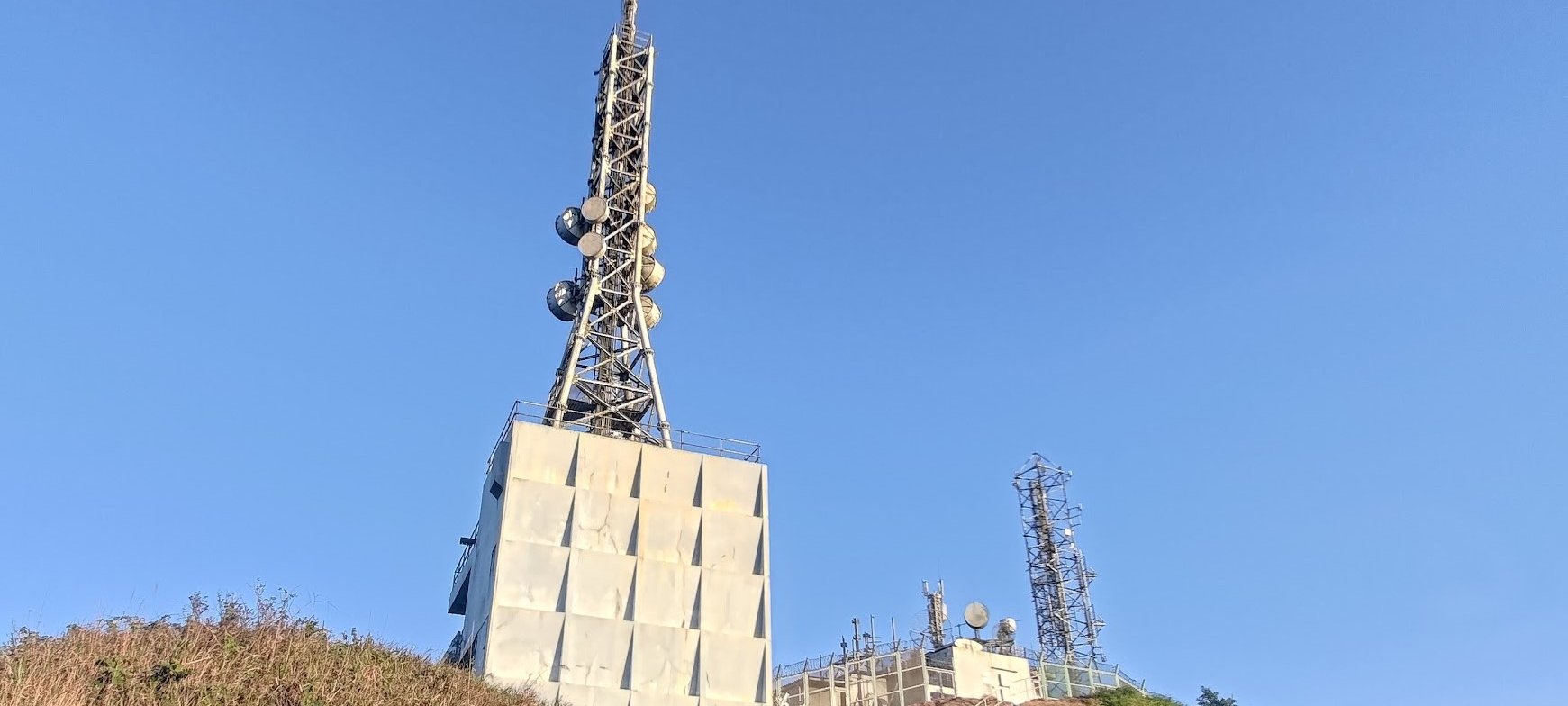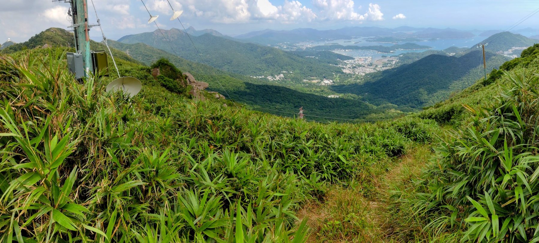 Continue on the path for 30–45 minutes until you reach the Kowloon Peak Television and Radio Tower (just after going past an overgrown bamboo section and helipad).